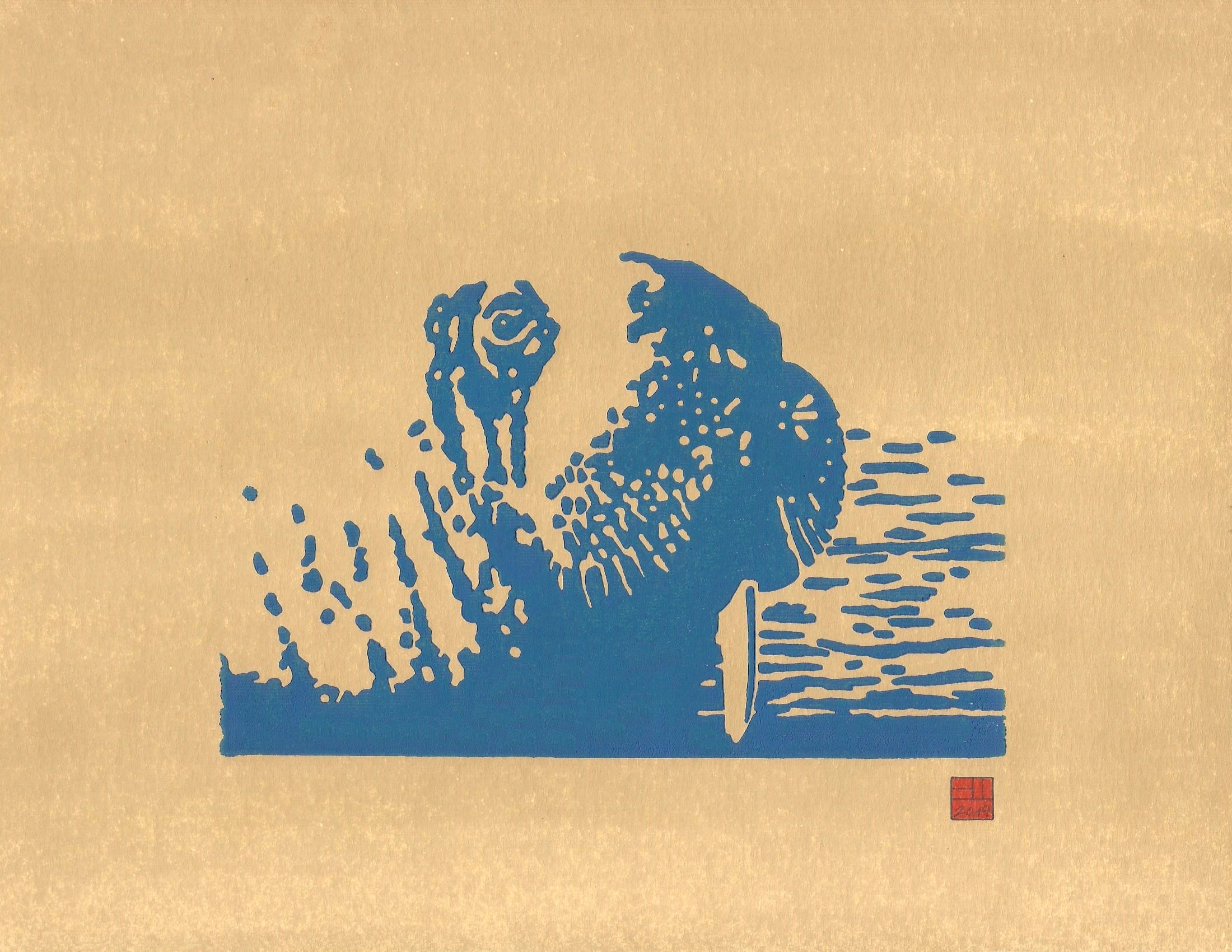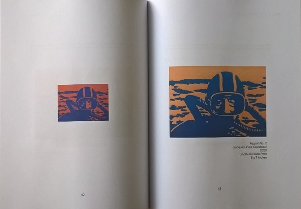 Water Planet takes inspiration from the Undersea World of Jacques Cousteau documentaries. This series of relief prints was intended to serve as an illustrated quote book, with the documentary titles serving as the titles of the artworks themselves. These prints not only celebrate the the work of an early environmentalist and pioneering spirit of those who sailed aboard Calypso as she circumnavigated our blue planet, but to some degree, explore the quality of our oceans and planet’s stewardship since the last of these films originally aired on 30 May 1976.